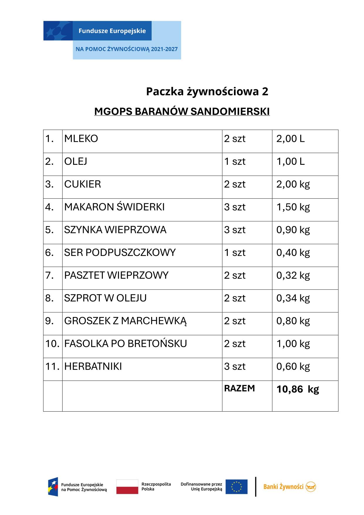 Dla osób korzystających z pomocy żywnościowej w ramach Fundusze Europejskie na Pomoc Żywnościową 2021- 2027 - Podprogram 2023