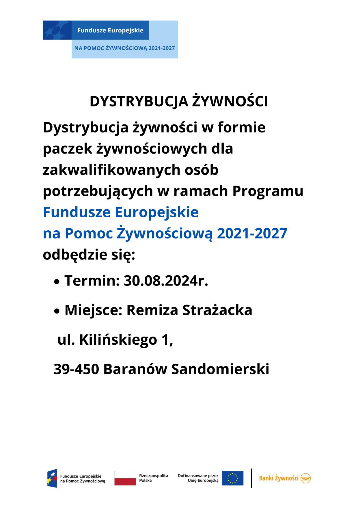 Miejsko-Gminny Ośrodek Pomocy Społecznej w Baranowie Sandomierskim informuje, że w dniu 30.08.2024 r. (piątek) od godz. 08:00 do godz. 12:00 i od godz 13:00 do godz. 15:00